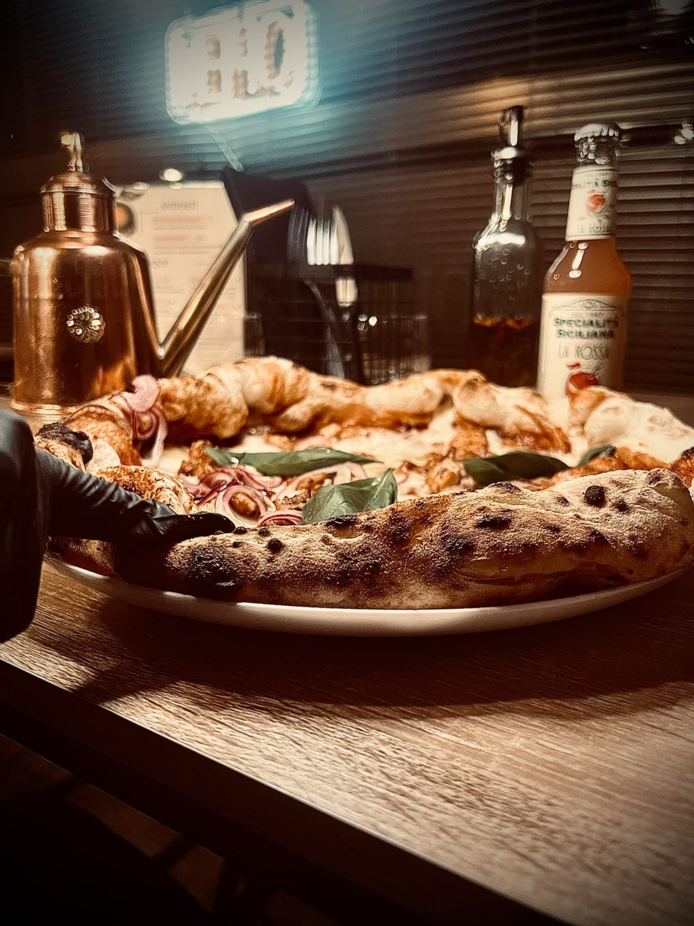 Savourez nos pizzas cuites au feu de bois, préparées selon la plus pure tradition napolitaine.