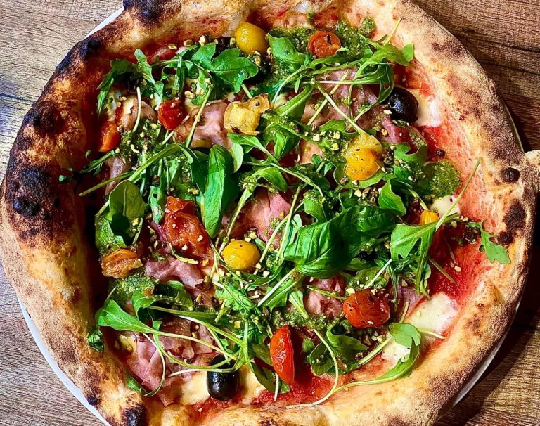 Une pâte faite maison, dans la pure tradition napolitaine, cuite au feu de bois à 400 °C dans un four napolitain typique.